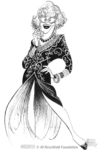 At the opening night celebration party for his Broadway debut as Dame Edna, Barry Humphries approached our table at Sardis restaurant. He introduced himself and showed Al a copy of a new CD of the modern composer, Karol Rathaus, with a Hirschfeld portrait on the cover! The German emigree had written the score for Broken Blossoms (1936), a film which starred Dolly Haas before she came to America and was Humphries’ favorite composer. He asked Al to autograph the CD. It was the beginning of a special friendship. The remarkable comedian was a closeted intellectual. He was proud of performing Shakespeare with Zoe Caldwell in the Australian provinces. I began to invite him to our home.