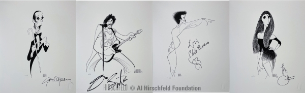Twenty one limited-edition prints of acclaimed caricature artist Al Hirschfeld – signed by the iconic stage and screen stars featured in the image – are being auctioned online to benefit Broadway Cares/Equity Fights AIDS and the Al Hirschfeld Foundation, in partnership with Heritage Auctions, the largest collectibles auctioneer in the world.