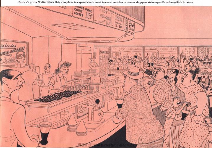 president walter mack surveys the scene at nedicks. from Dinner in the Orange Room. colliers 5/3/52