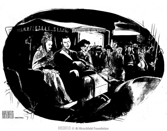 ON THE HOLLYWOOD FRONT. AH ARTICLE. STARS ARRIVE BY HORSE & BUGGY FOR SIMOUT PREMIER AT HAWAII THEATRE. NYT MAG. 8/23/42
