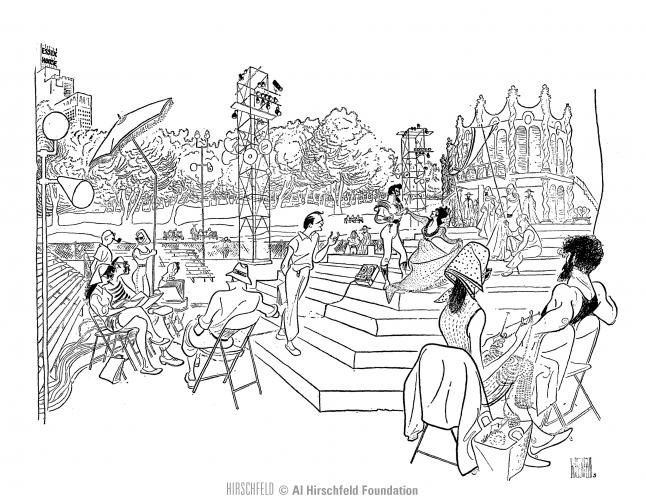 joe papp directs much ado about nothing in central park, 1961
