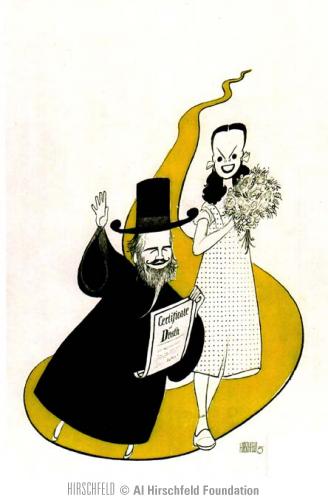 meinhardt raabe as a munchkin with judy garland as dorothy in the wizard of oz, ink and gouache 8/02