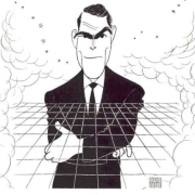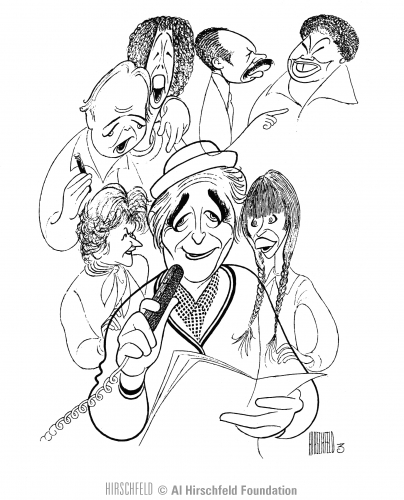 Norman Lear surrounded by his creations: Maude, Mary Hartman, All in the Family, the Jeffersons, 1986