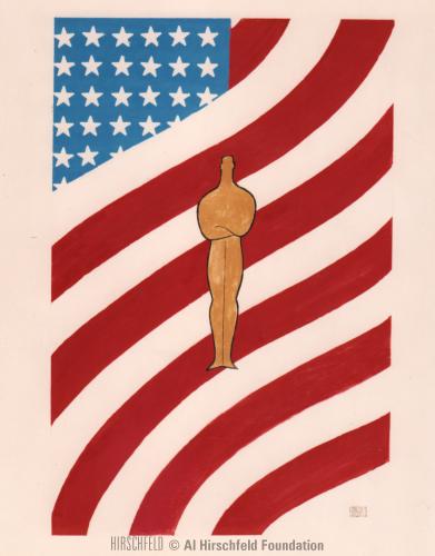 the oscar and the american flag. ampas poster for 75th anniversary of the oscars. gouache and ink. 4/02