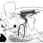 Shakespeare, Shaw, and O’Neill Manipulate their Characters, Mural for Playbill Room at the Hotel Manhattan, 1958Julie andrews and Rex Harrison in My Fair Lady, Alfred Lunt and Lynn Fontanne in The Taming of the Shrew, Florence Eldridge and Frederic March in long Day’s Journey into Night