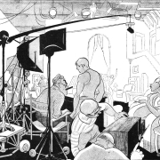 Alfred Hitchcock and Ivor Montagu, producer on the set of Sabotage (aka The Woman Alone), HT 2/28/37