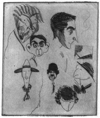 caricature etching: chaplin, patsy kelly, eddie cantor, wm. s. hart, john barrymore, & others, c. 1926