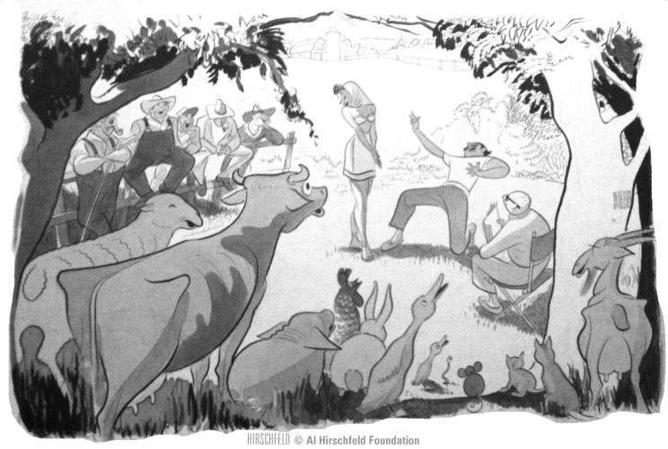 life along the citronella circuit - actors & director rehearsing for farmers & animals, nyt mag 7/4/48