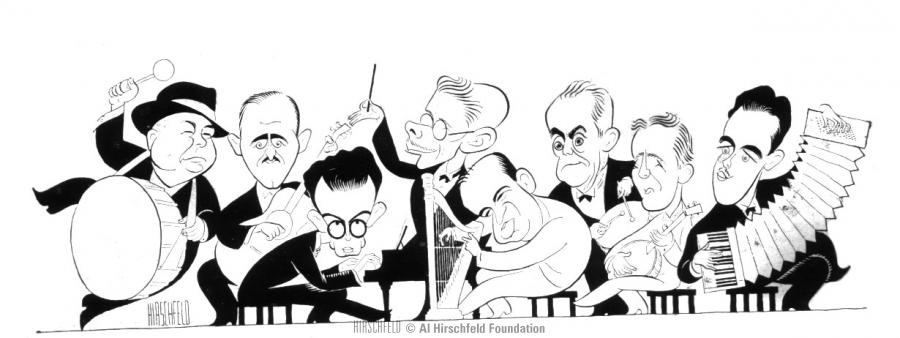 theater critics playing musical instruments. c. 1939
