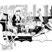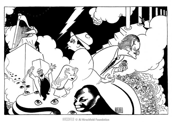 Carol Marcus would marry Saroyan twice (1943-1949 and 1951-1952). Hirschfeld had known her since she was a teenager, and he squired around her, Gloria Vanderbilt, and Oona Chaplin to nightclubs to show them what the city had to offer. She would go on to have a long and happy marriage to another Hirschfeld friend, Walter Matthau.