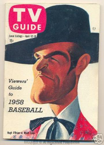 HUGH O'BRIAN as WYATT EARP, GOUACHE. T.V. GUIDE 4/12/58.