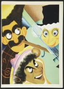 campaign: the marx brothers in a night at the opera, 1935 (color image trade ad of three with abstract images of violin in background)