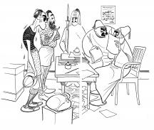 westward ha!, p.41, "a cultural evening with the engineer and mate" (perelman and hirschfeld) work on paper.