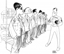 biloxi blues: broderick, barry miller, brian tarantina, mat mulhern, alan ruck, geoffrey sharp, bill sadler (3/24/85)