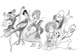 gene barry from la cage, patti lupone from evita, andrea mcardle from annie & jennifer holiday from dreamgirls. haggar ad, 1983
