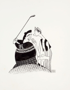 jackie gleason and art carney of the honeymooners in the golf ball. gouache, 1990. cbs video.