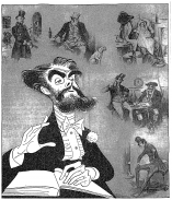 emlyn williams as charles dickens surrounded by characters from his novels. (2/3/52)