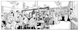 the crowd at the stage deli9l to r) portland hoffa, patrice wymore, fred allen, mike todd, betty field, elmer rice, mae west, joe e. lewis, harry hershfield, eddie cantor, earl wilson, joan blondell, tony martin, walter winchell, and milton berle, 1951