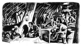 men in shadow: dean harens, ernest graves, everett sloane, francis de sales, burani, hargrave, de santis. (3/7/43)