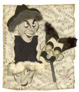 marx brothers ink with collaged cotton, tin foil, brillo pad, and sheet music on board, c. 1935