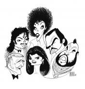 abe hirschfeld& maclaine, pavarotti, jackson, mason, quinn, trump, barbara, channing, onassis, gleason, elvis, monroe, 1988