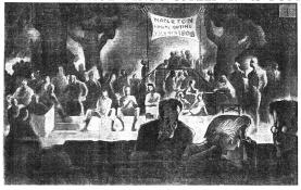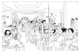 broadway first nighters. mural for playbill room of hotel manhattan, c. 1958