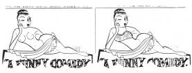 reclining figure advertisement- shows a half-naked woman winking. (10/54)