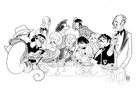 broadway first nighters. mural for playbill room of hotel manhattan, c. 1958