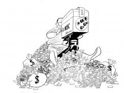 nbc tv cameraman in piles of money, colliers 11/25/55)