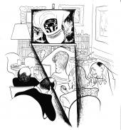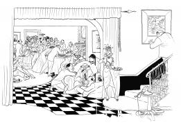 westward ha!, p.41, "a cultural evening with the engineer and mate" (perelman and hirschfeld) work on paper.