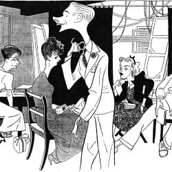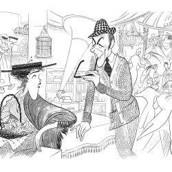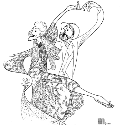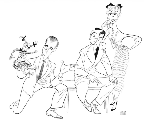 It was in the early 1940s, as an independent producer, that Cheryl Crawford’s productions first attracted the pen of Al Hirschfeld, with her revival of Porgy and Bess. The Theatre Guild’s 1935 premiere production had not been a financial success. In 1942, Cheryl had many of the recitatives cut, making the opera more accessible as musical theater. It was a great success and established Cheryl as a force in the theater. A year later, Al captured another Crawford Show: the Kurt Weill/Ogden Nash musical One Touch of Venus.
