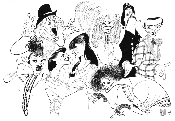 As I left the townhouse, I had no idea of the circumstances under which I’d return there a decade later. My second visit was in 1983, right when the Charlotte Sweet cast recording was being assembled. Al Hirschfeld had already done one caricature of the show, a profile of actress Polly Pen, after attending the same performance as critic Edith Oliver of the New Yorker, who wrote one of the show’s most negative reviews. Like an object lesson in how differently two people can react to the same performance, it turned out Hirschfeld had loved the show and was recommending it to his friends.