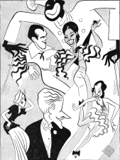 Publishes his first Summer Theatre map, "A True Map Of Ye Summer Theatres Situated 45 Minutes And More From Ye Olde Broadway," in the New York Times. Hirschfeld's maps or drawings of summer theatre would appear in new York newspapers for the next 20 years.
