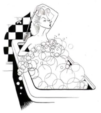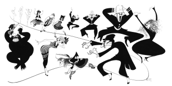 Nina's name, openly but sneakily contrived to be part of the drawing, appeared for the first time. Ever since then I have included her name slyly in all of my drawings. This bit of tomfoolery became one of the worst-kept secrets in the publishing business. The game became a sort of ritual to many readers of the Sunday Times drama page. On one occasion I made the unpardonable error of microscopically lettering in the name of Nina's best girl friend, Lisa, the daughter of the distinguished writer, Louis Kronenberger. Well! all hell broke loose on that one. I received telegrams and flowers from forgotten acquaintances and complete strangers: one all the way from Alaska, congratulating my wife and me on the new arrival.