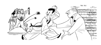 Nina's name, openly but sneakily contrived to be part of the drawing, appeared for the first time. Ever since then I have included her name slyly in all of my drawings. This bit of tomfoolery became one of the worst-kept secrets in the publishing business. The game became a sort of ritual to many readers of the Sunday Times drama page. On one occasion I made the unpardonable error of microscopically lettering in the name of Nina's best girl friend, Lisa, the daughter of the distinguished writer, Louis Kronenberger. Well! all hell broke loose on that one. I received telegrams and flowers from forgotten acquaintances and complete strangers: one all the way from Alaska, congratulating my wife and me on the new arrival.