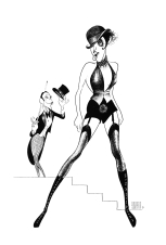The other, or geriatric, conjecture is one I would normally hesitate to accept, but studies of longevity in Ecuador, Soviet Georgia, and Hunza in northwestern Pakistan tend to support it. Jean Auguste Dominique Ingres, the famed French painter and draftsman, allegedly died in 1867 at the age of 80. I repeat ‘allegedly,’ since as we all know, the Franco-Prussian War was brewing, everybody was running around in circles, and vital statistics often were lost or distorted.  Suppose, then, that Ingres didn’t actually die but slipped out of France during the turmoil. Now, where would one go if he was an old Frenchman searching for a secure and peaceful existence? Obivously to some place like St. Louis, a city founded by his countrymen on the Mississippi with extensive levees (Ingres loved levees), and colorful natives strumming banjos, courting and dancing the cakewalk. And just suppose – stay with me a minute — suppose that by sheer happenstance he bumped into the Hirschfeld clan out there, warm-hearted people that took pity on this homeless old foreigner, not knowing his age or the first thing about him, and they adopted him, reared him as one of their own children…You see what I’m driving at?  Simply that if Hirschfeld draws like a streak –which he does, yes, yes, enough already — it’s no wonder. So would you if you were Jean Auguste Dominque Ingres and you had 193 years of practice. I don’t know why everybody’s making such a fuss over him. To me he’s just a fat little dwarf with whom I once wrote a flop musical comedy.